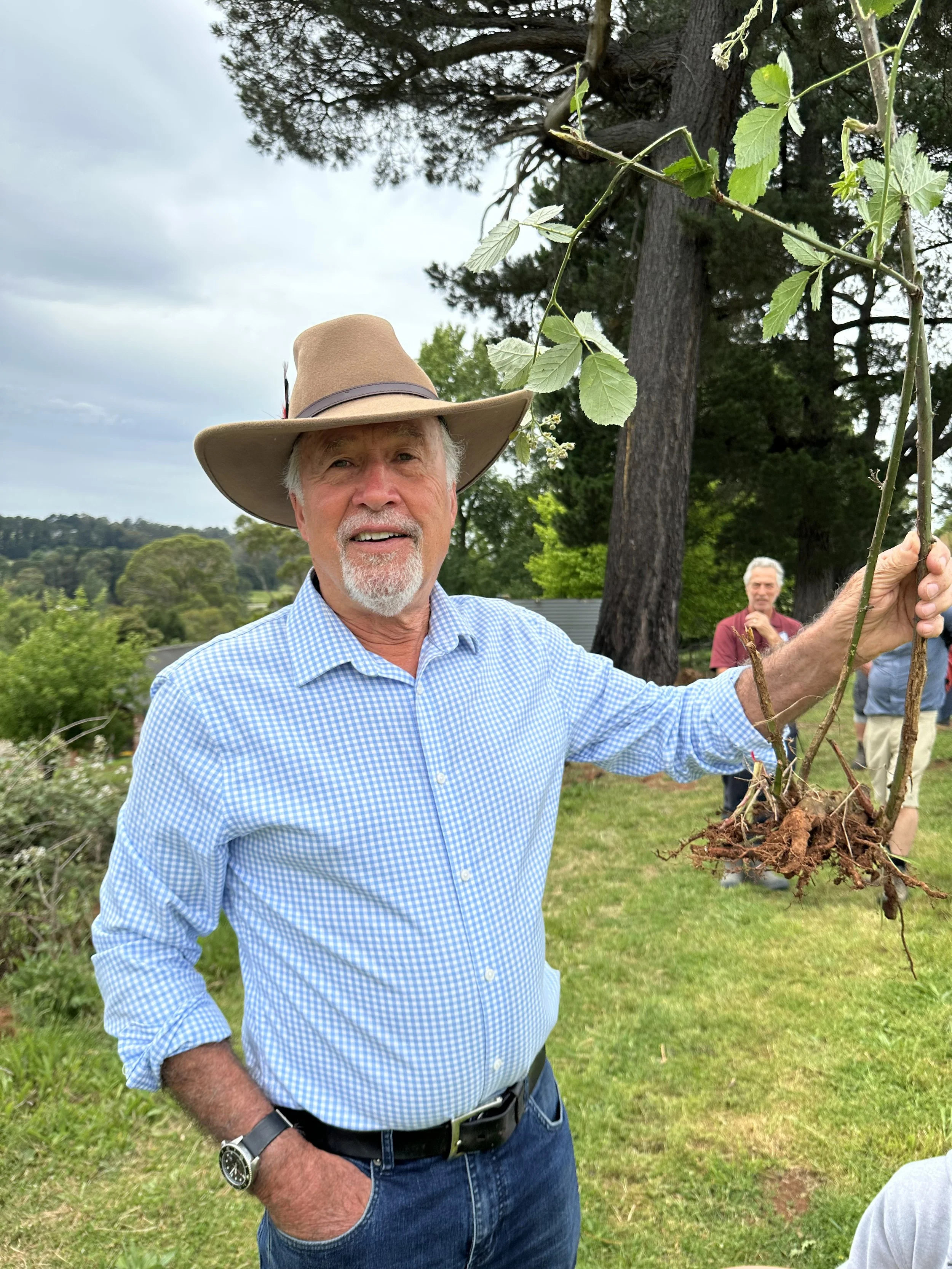 Where the large machines couldn’t reach, a whipper snipper was demonstrated to remove eth vegetation load. Dion used a blade to cut through the blackberry canes and demonstrated an up/down technique which prevents cut canes whipping around onto the operator. Here, herbicides needed to be kept to a minimum, so a knapsack will be used to spot spray regrowth and it may require repeat attempts over time before the area is revegetated with native plants.